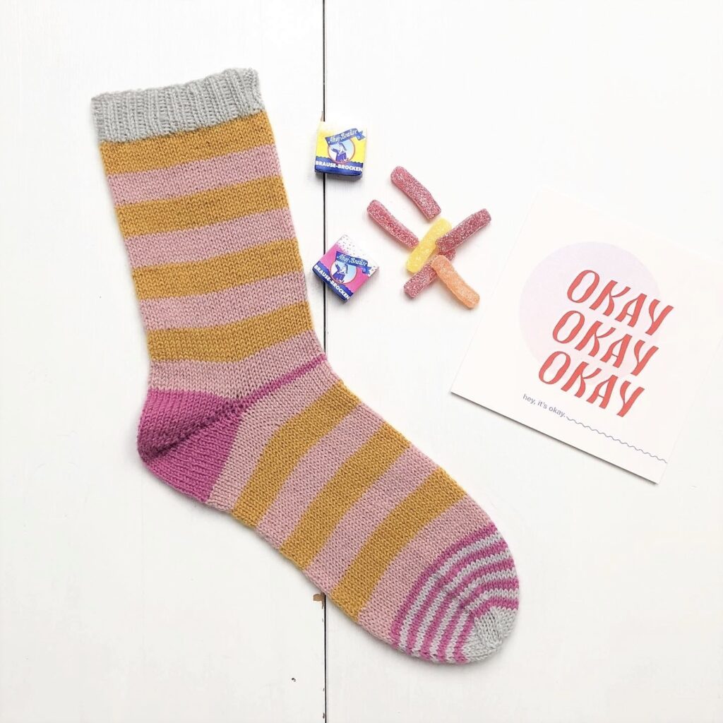 Letos vykopneme KAL mými oblíbenými proužky! Ty k ponožkám prostě patří. Ať už je na nich jen jeden, nebo jsou proužkované odshora dolů. V šesti párech, které jsem loni upletla, byly pruhy na pěti. Jsem prostě fanynka pruhovaných ponožek. 🙂