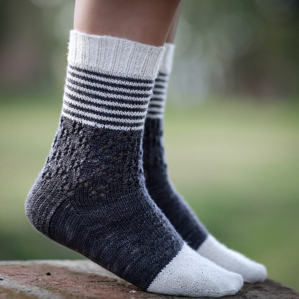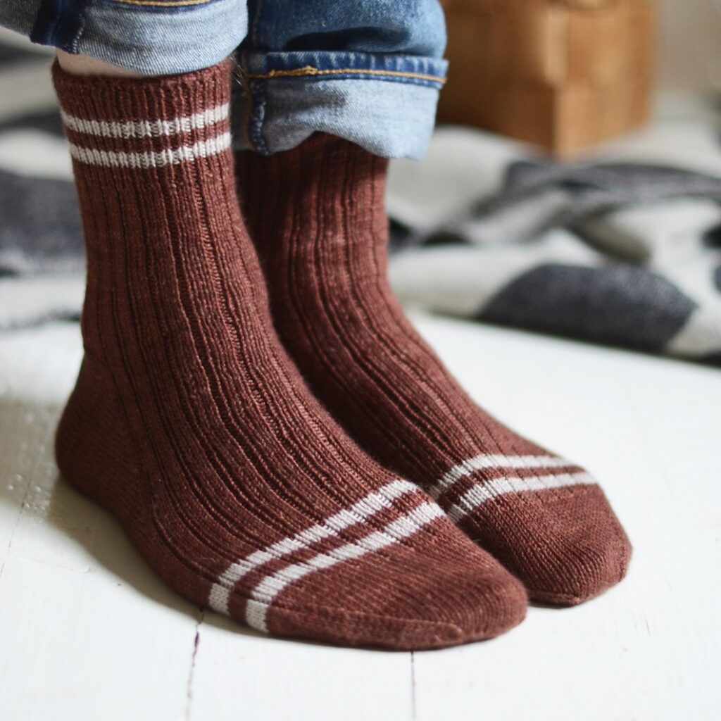 Proužkované ponožky jsou také klasika. Sama jsem je pletla několikrát. Hodí se i pro pánské ponožky, a podle mě s nimi nemůžete šlápnout vedle. Proužky se dají plést po celé délce jako u ponožek Anni od Veery Välimäki a bezmyšlenkovitě je opakovat klidně až k podkolenkám. Pokud chcete retro styl, stačí jen pár proužků jako u ponožek 1977 Socks Marie Honzíkové (návod v češtině), Men’s Socks for Giving Away ze silnější příze DK od Purl Soho nebo Oak Socks opět od Veery.