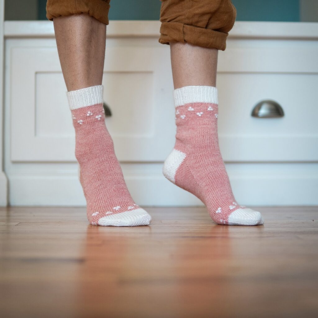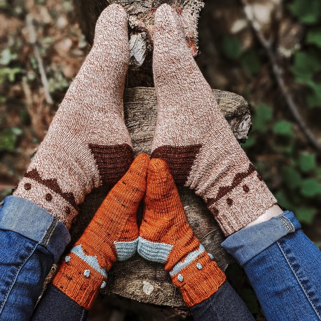 Poslední dva tipy jsou od slavných designérek Andrey a Joji. Rychlé ponožky, které navíc upletete jednoduše ze zbytků, jsou melírované Bear Paw Socks Andrey Mowry. Pletla jsem od ní jiné se stejnou konstrukcí a musím říct, že to jsou technicky jedny z nejjednodušších ponožek. Pokud máte zkušenosti, není těžké si melírované ponožky uplést bez návodu podle sebe.
