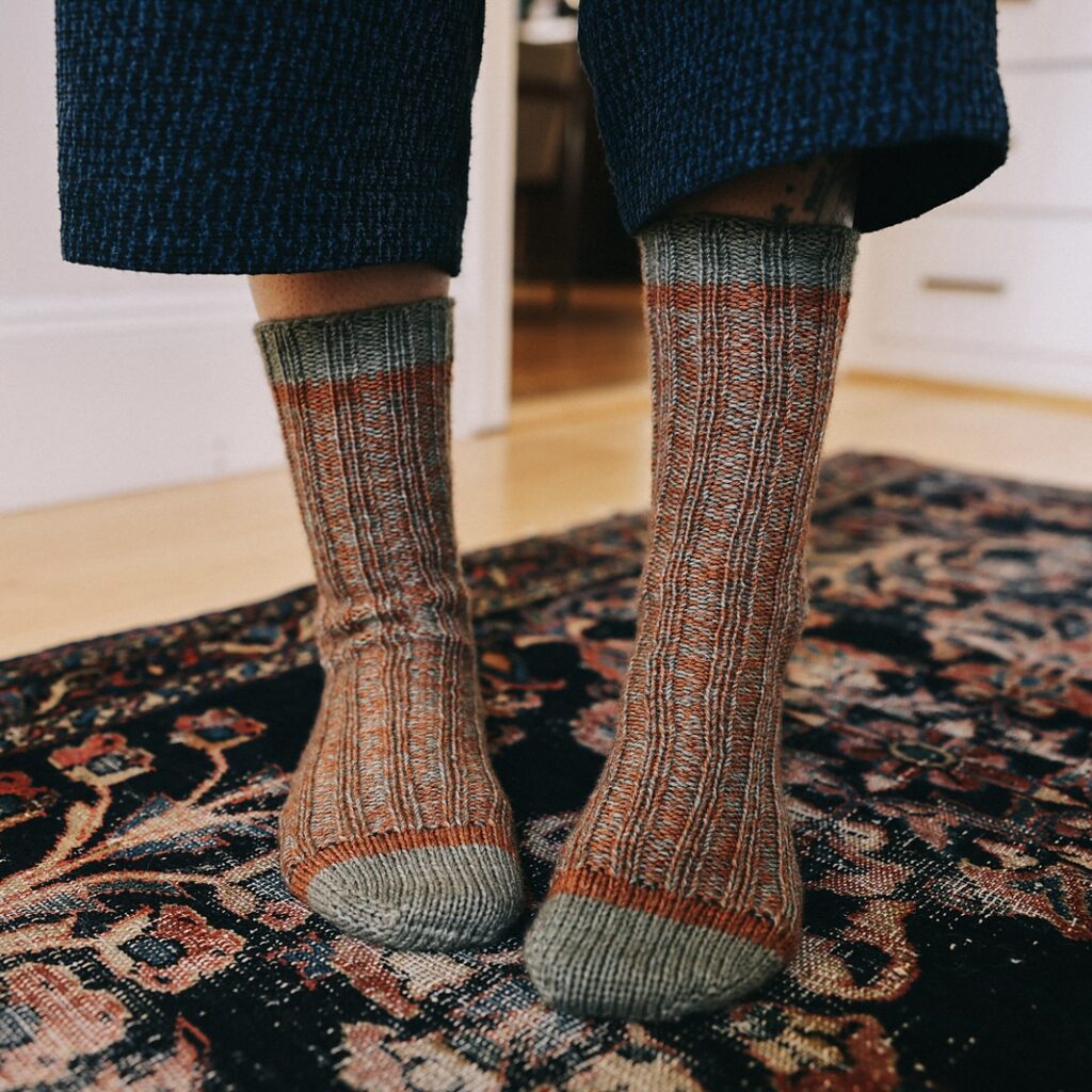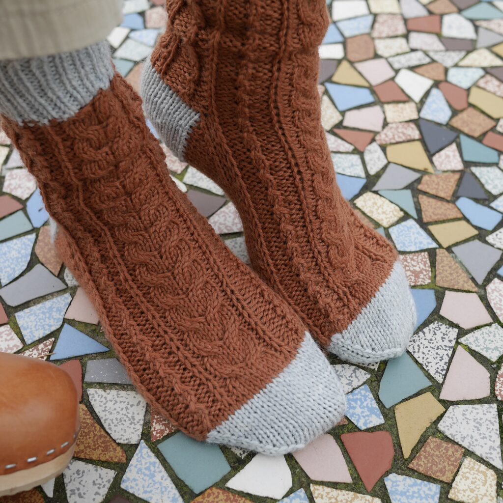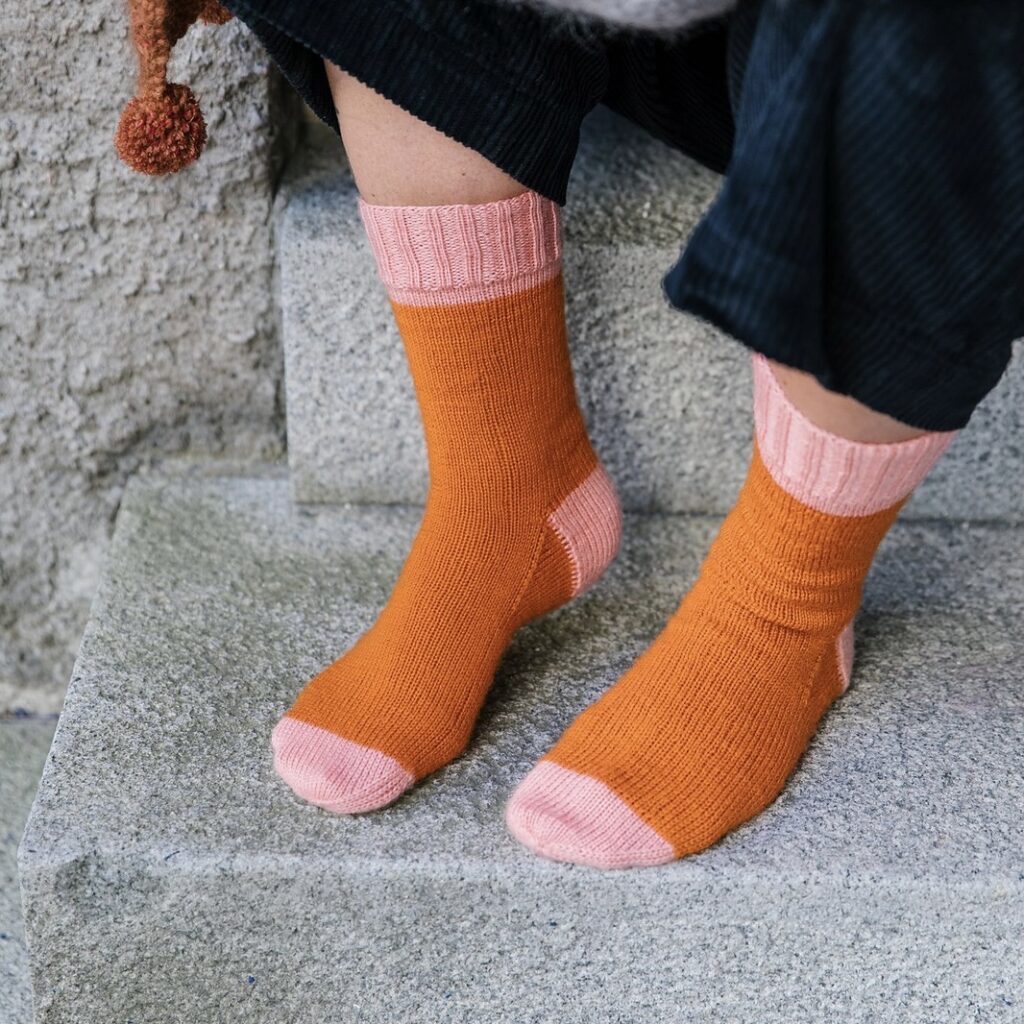Nejjednodušší způsob, jak uvést do pletení ponožek druhou barvu, je použití jiné barvy na lem, patu nebo špičku. Barvy dokonce nemusí mít ani výrazný kontrast, aby vynikly, protože s nimi pletete větší plochy. Podle mě to jsou ty nejútulněji vypadající ponožky, prostě klasika, která nezestárne.