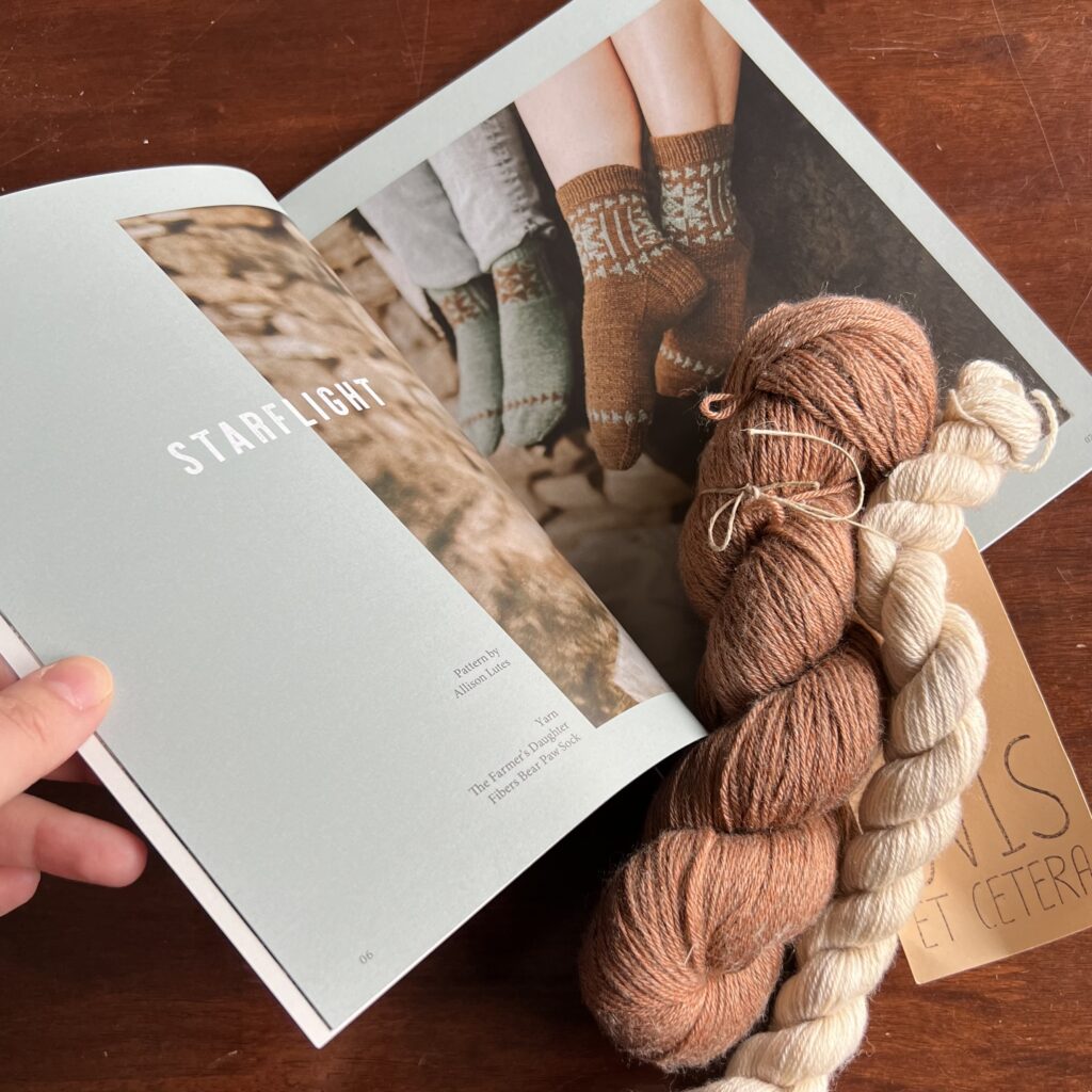 Asi před rokem a půl jsem neodolala a objednala si tajemný balíček ponožkové příze. Bylo to první předplatné německého časopisu Making Stories, který s tímto konceptem pokračuje doteď. Ukázali jen barevnou paletu a slíbili, že to bude ekologická příze lokální značky. (Podobně to u nás dělá značka Mokoša.) Mohla jsem si objednat i speciální balíček s dárečkem navíc, ale cena byla už tak vysoká, že jsem se spokojila jen s přízí.