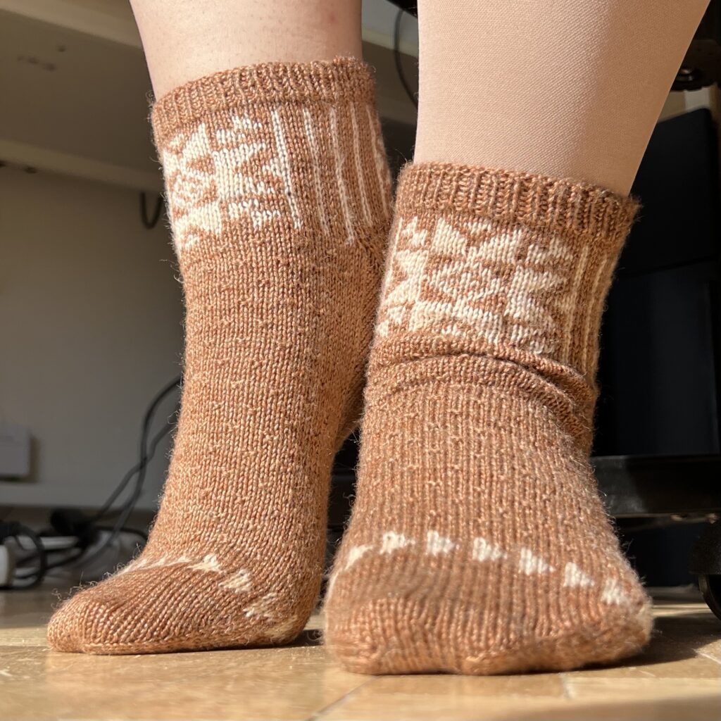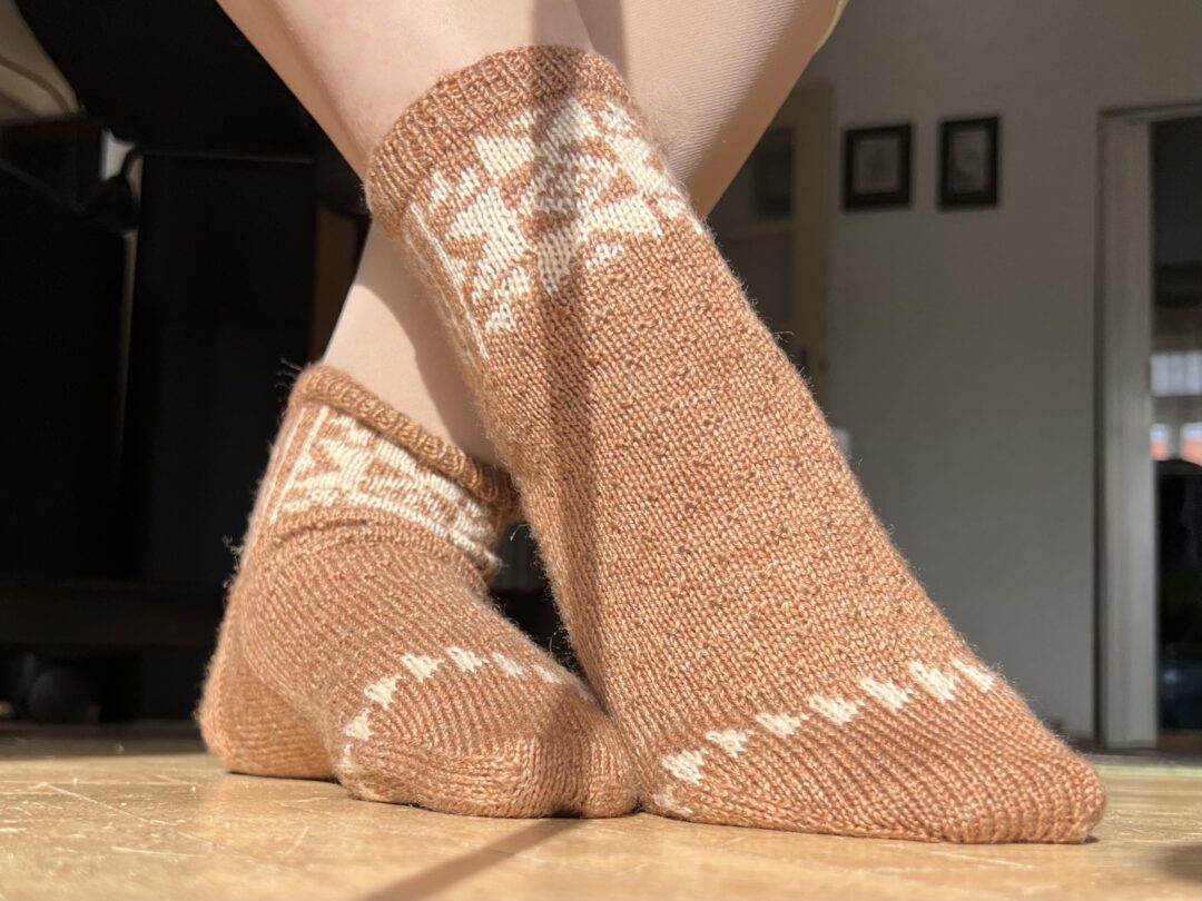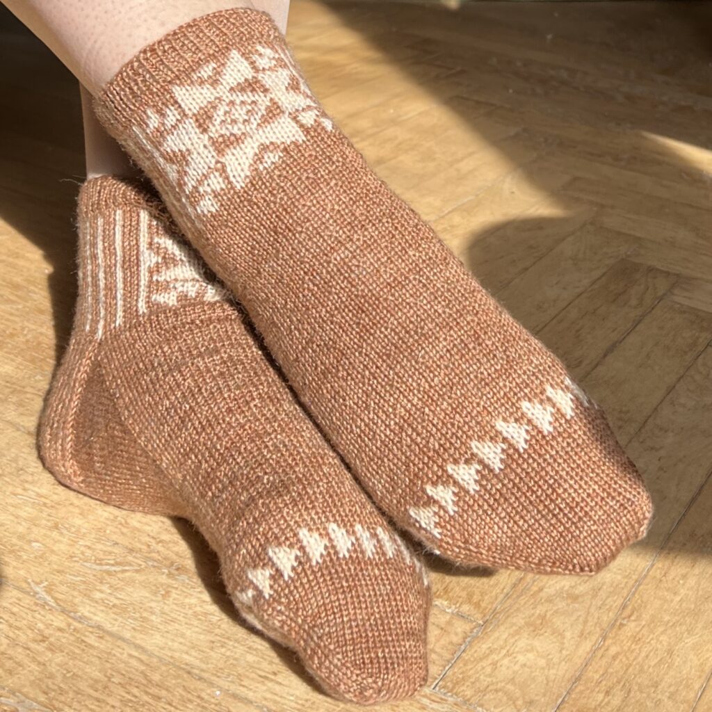 Na konci roku 2023 mě konečně napadlo zkombinovat speciální přízi a návod z Pom Pomu, jenže přes všechny další projekty jsem se k ponožkám nemohla dostat. Abych se už dál nevykrucovala, začala jsem společný KAL a rozhodla se je uplést v rámci jednoho z témat. Tak a je to venku! Super Sock KAL vznikl proto, abych si konečně upletla tyhle ponožky. 🙂