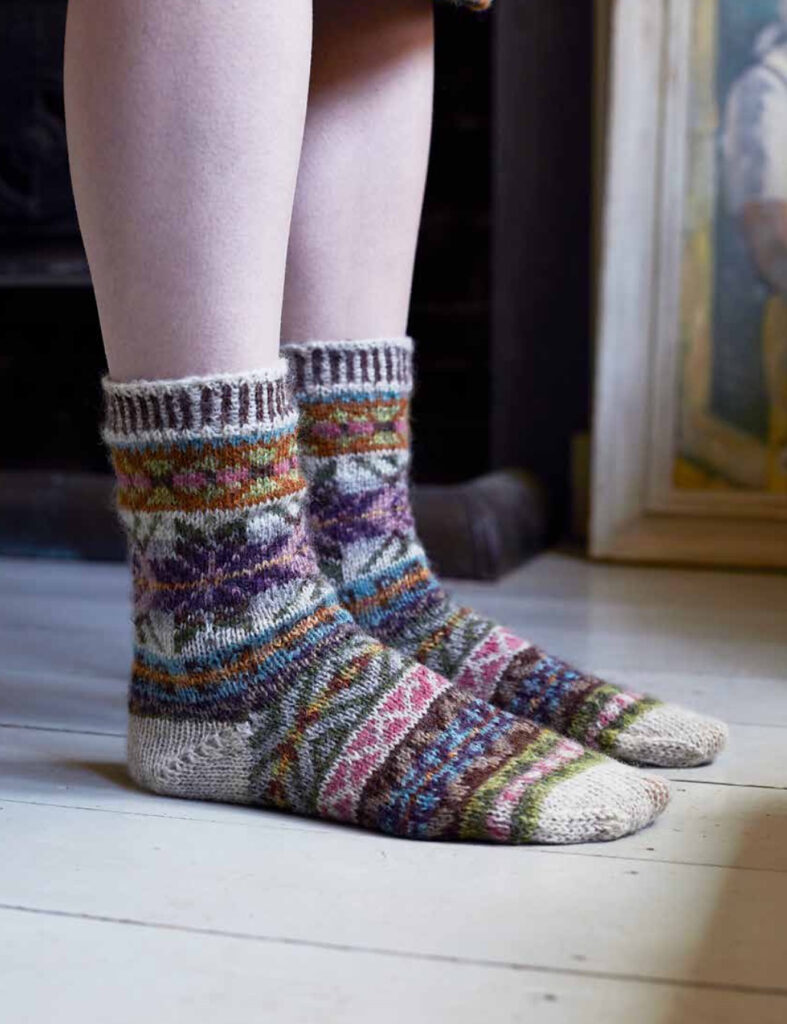 Nemusíte využít jen zbytky z pletení ponožek, ale i ze svetru. Tipuju, že tak to udělala Marie Wallin s ponožkami Lupin Socks, které jsou stejně krásné jako její svetry.