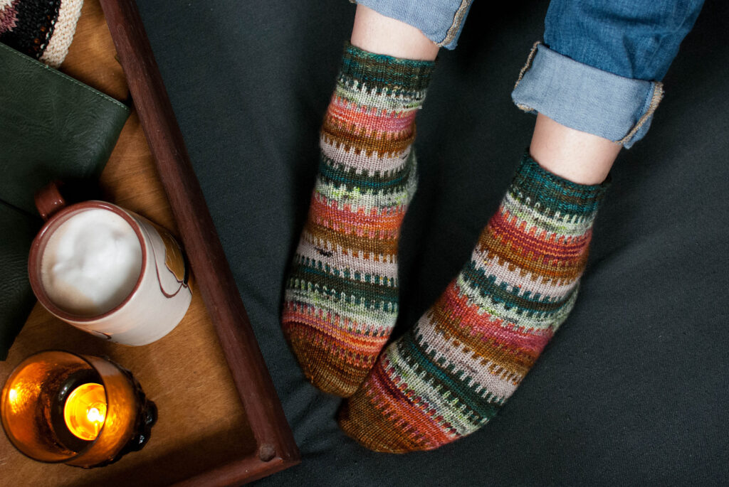 Možností je spoustu, vybrala jsem jen pár zástupců. Například ponožky My WabiSabi s jednoduchým geometrickým vzorem, které navrhla Mia Dehmer. Pokud pokukujete po něčem neodolatelně roztomilém a nevadí vám nepravidelný výplet, vyberete si u Stone Knits (třeba kočičí ponožky Herding Cats Socks).