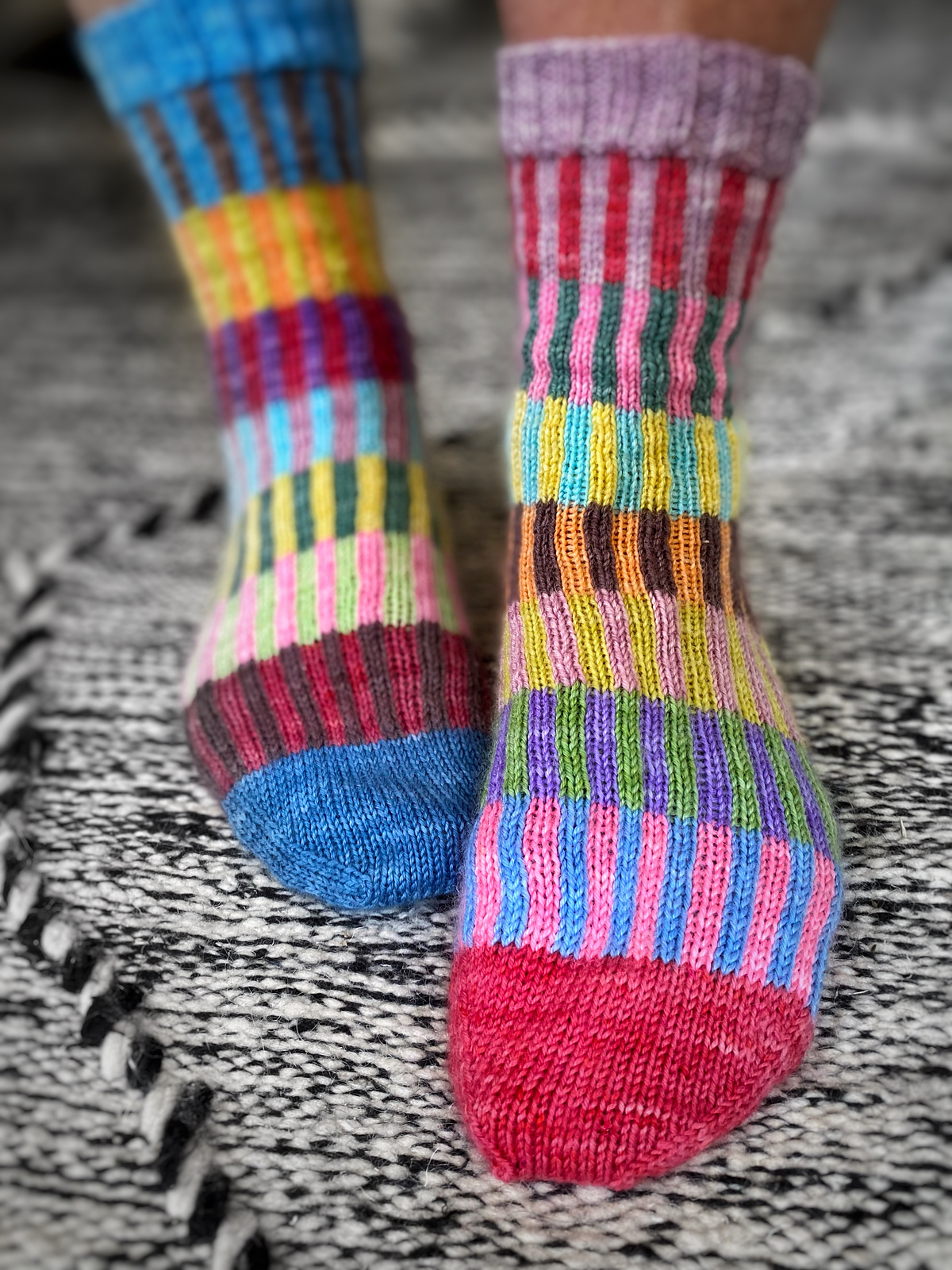 Existuje hodně návodů a tipů, jak na ponožky ze zbytků. Anglicky se jim hezky říká Scrappy Socks nebo Stashbusting Socks. Když je vygooglíte, najdete hromadu nápadů. Některé vzory jsou divoké, jiné docela jednoduché. Tady je jich pár pro inspiraci.