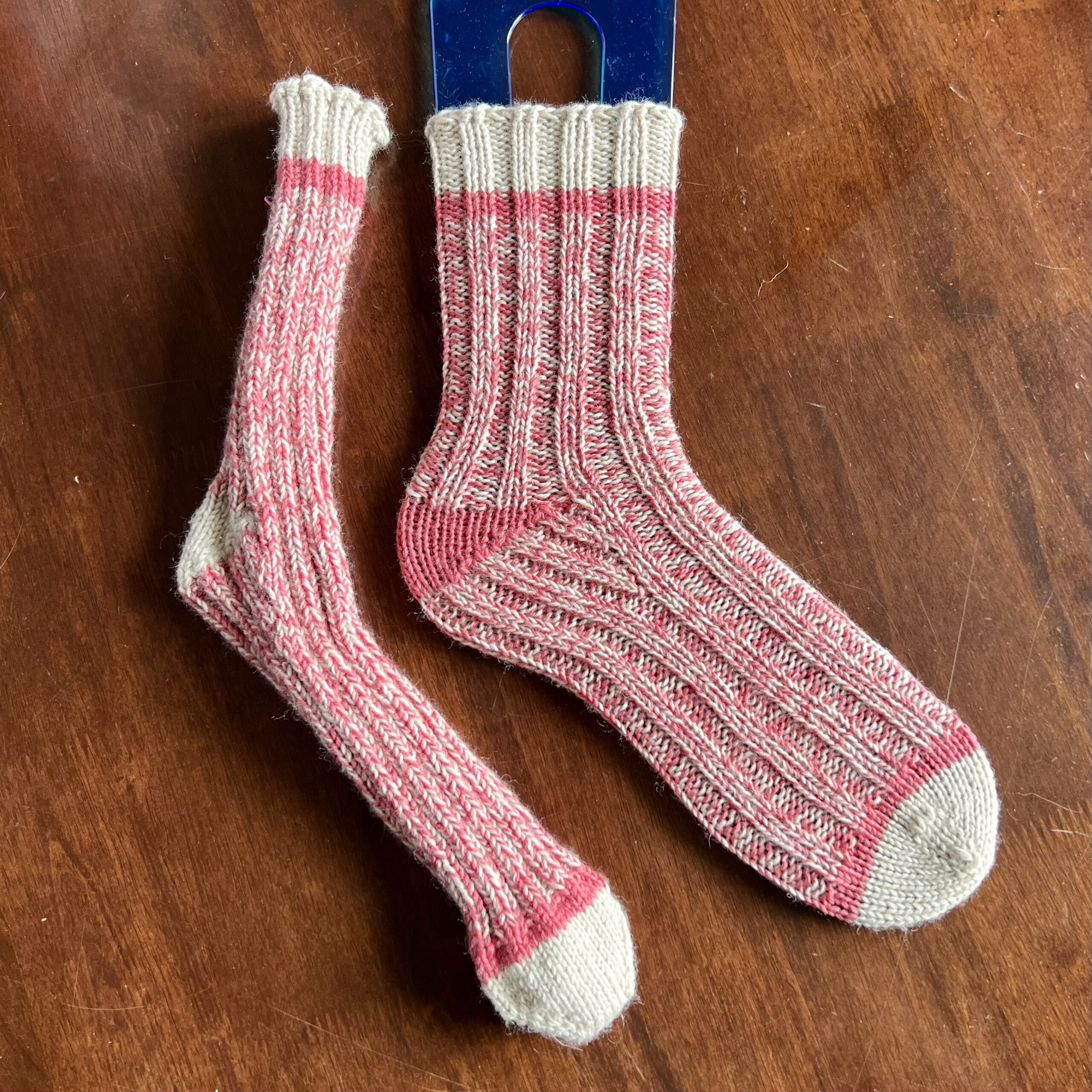 Bear Paw Socks jsou tak rychlé, že jsem měla první hotovou za dva dny! Rostly před očima. Nejvíc mě zdrželo hledání staršího vzorečku, ze kterého jsem potřebovala vypárat růžovou přízi.