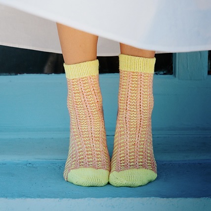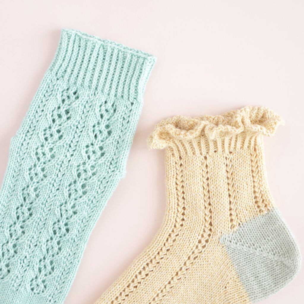 Například ponožky Camomille Vanilla, tradiční portugalské As meias dos corações, nebo Lingerie, které jsou už docela složité, ale návod je zdarma. Pokud vás krajka nebere, doporučuji srdíčkovou romantiku s I Heart Socks.