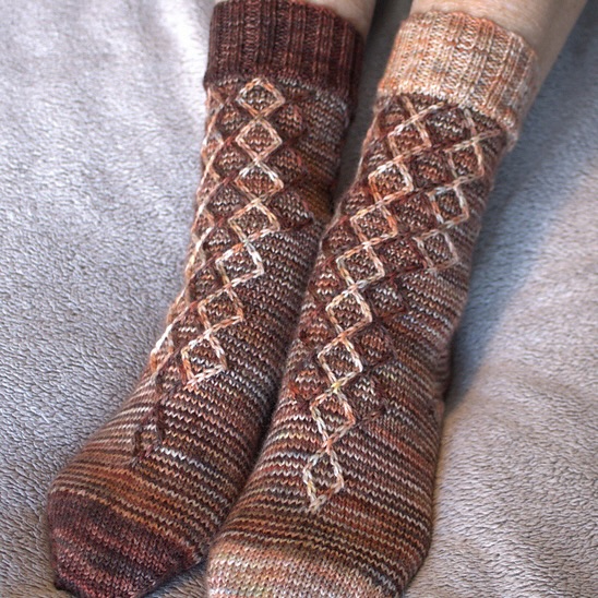 Jednoduché lesní ponožky ponožky jsou Aine Socks. Spojují pletení a vyšívání, ale není se čeho bát. K návodu je k dispozici video.