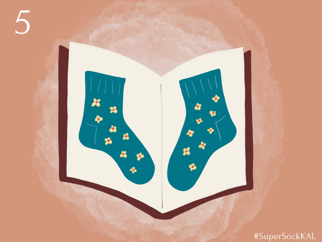 Páté téma ponožkového Super Sock KALu můžete vzít i doslovně. Vypleťte si na ponožky svou oblíbenou postavu. Třeba z knihy ponožek s Mumínky (anglicky Knitted Moomin Socks), která zatím vyšla anglicky, ale brzy vyjde i česky! Nebo si upleťte ponožky s knížkou či filmovým pásem, a jen vy budete vědět, jaká kniha nebo film to je.