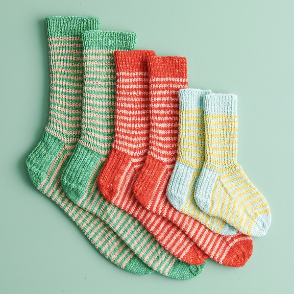 Výrazné barvy a proužky vedou u ponožek Fun Stripe Socks a Cider House Socks. S texturou si zase vyhrály autorky ponožkových designů Zigzag Ah! Socks a Strata.
