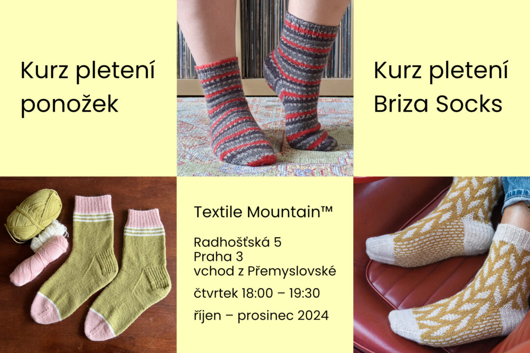 Na kurz pletení Briza Socks v Textile Mountain se můžete přihlásit přes Reservio.