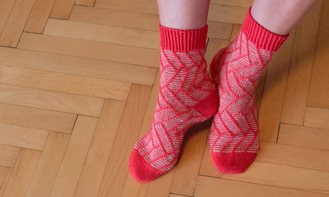 Podle názvu možná poznáte, že jsem ponožky navrhla v době covidu a lockdownů. Tehdy jsem trávila veškerý čas doma v našem pražském bytě a inspiraci jsem čerpala jen tam (a na internetu, samozřejmě). Tak vznikl nový design ponožek, který má domov nejen v názvu, ale i ve vzoru. Připomíná naše staré dřevěné podlahy. Často po nich chodím v pletených vlněných ponožkách a jsem vděčná, že si můžu dovolit komfort přírodních materiálů (i když parkety už dávno potřebovaly zbrousit).