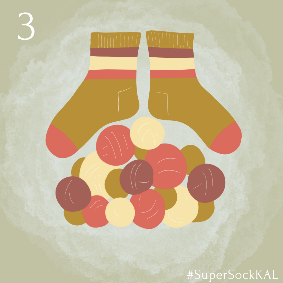 Super Sock KAL má volnější tempo i zadání. Plete se jeden pár ponožek každé dva měsíce podle zadání. Témata jsou poměrně volná. Loni se pletly například dvoubarevné ponožky, ponožky ze zbytků nebo inspirované oblíbenou knihou či filmem. Každý si určí sám, jaké ponožky bude plést, jaký návod si vybere, nebo jestli si navrhne své vlastní.