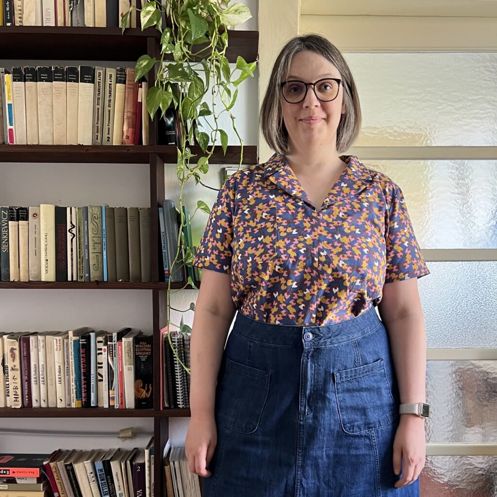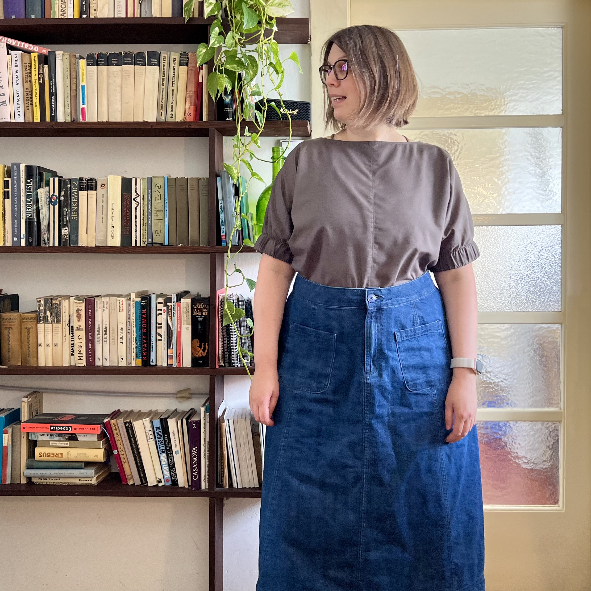 Střih jsem nevybrala náhodou. Posledních pár let jsem se online připojila ke skupině amerických pletařek kolem Allyson Dykhuizen a Laury McDougal. Za pár dolarů měsíčně mám přístup k jejich online komunitě, kde pořádají společné akce, povídání, soutěže, přednášky a tak podobně (je to podobné jako facebooková skupina, akorát s pravidelným programem a moderováním). Všichni tam jsou moc milí, kreativní, a kromě pletení se věnují různým dalším ručním pracem, ať už v USA oblíbenému quiltování, nebo šití oblečení. Kouzlu jejich malé komunity jsem propadla už při pletení, takže když začaly společně i šít a založili Garment Sewing Workroom, nemohla jsem zůstat pozadu.