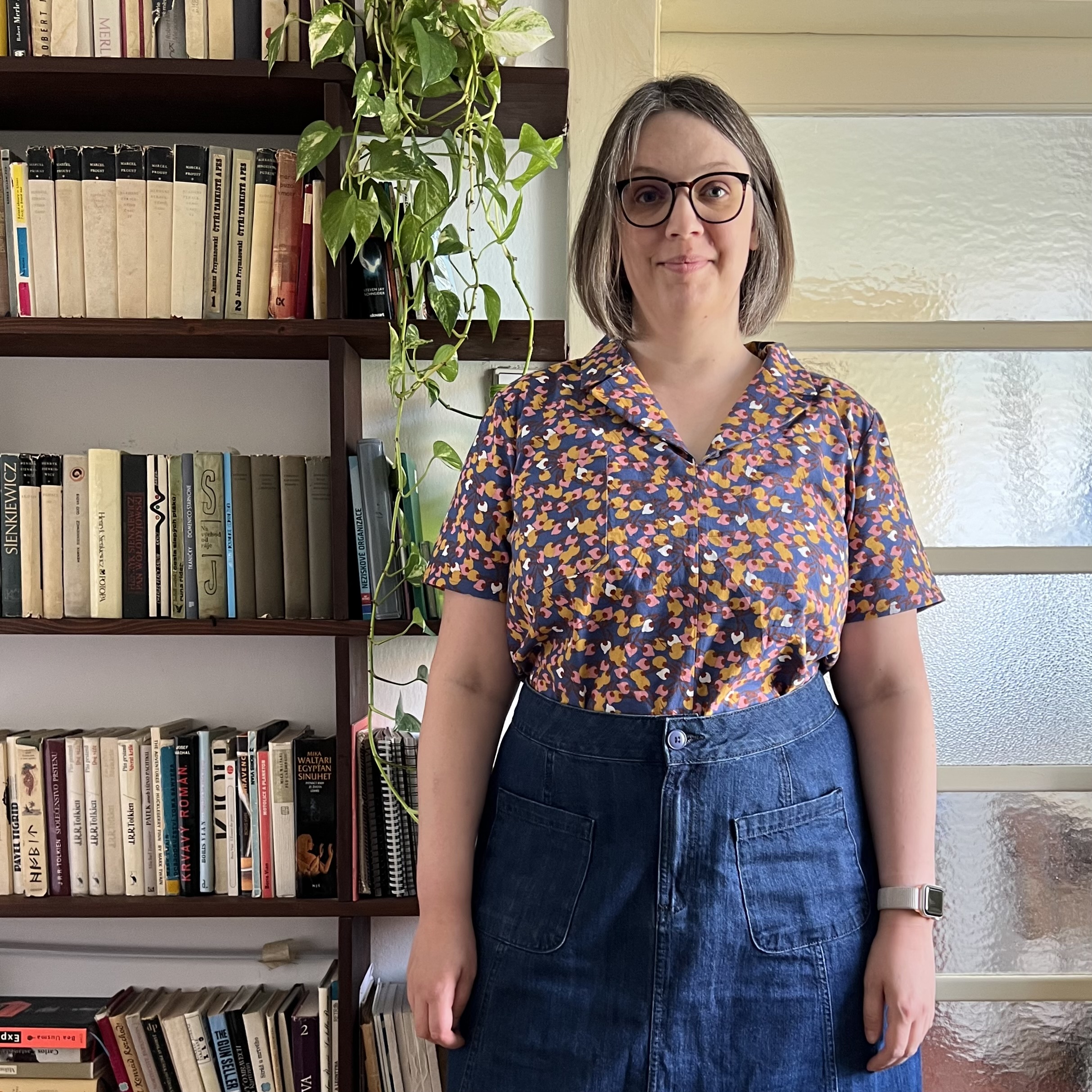 Košile má hodně chyb, ale jsem ráda, že jsem to zvládla. Byl to můj první pokus upravit papírový střih v několika krocích. Dřív jsem většinou ušila základ a pak špendlila před zrcadlem. Naučit se poznat problematická místa a upravit je ve střihu je můj sen. Tohle byl první krok k jeho uskutečnění.