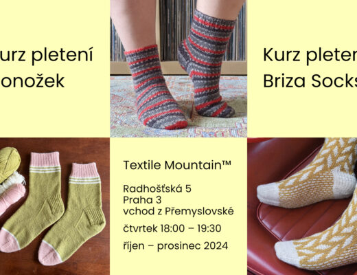 Konečně jsem fyzicky fit, abych se s vámi mohla potkat osobně, tak jsme společně s Textile Mountain připravili rovnou dva kurzy pletení ponožek: pletení (jednoduchých) ponožek a pletení Briza Socks.…